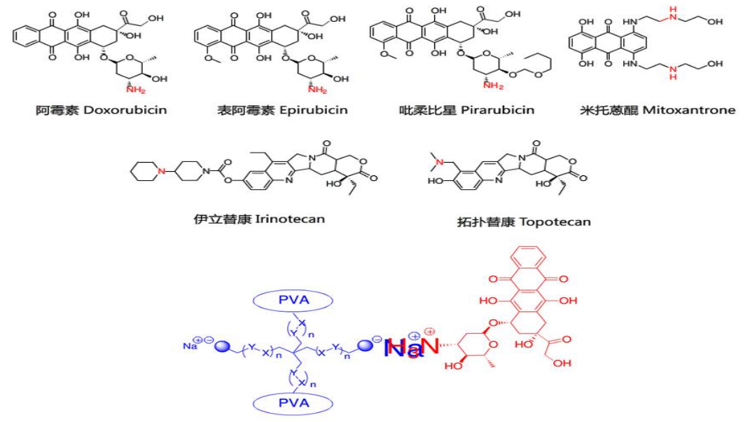 多數(shù)治療腫瘤的細胞毒性藥分子結(jié)構(gòu)中都含有自由氨基(包括伯胺、仲胺和叔胺),同時都是以鹽酸鹽的形式銷售和使用,因此在血液中就會形成帶正電的氨基,在治療時候可以靶向細胞體內(nèi)的蛋白質(zhì)或核酸中富含負電基團的區(qū)域,起到殺傷腫瘤細胞的效果。
